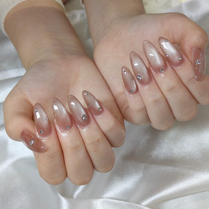 今回は、マグネットネイルにストーンをのせて仕上げました★