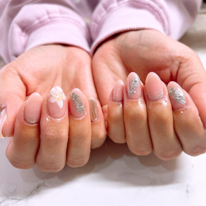 沖縄旅行に向けてプルメリアモチーフネイル♡