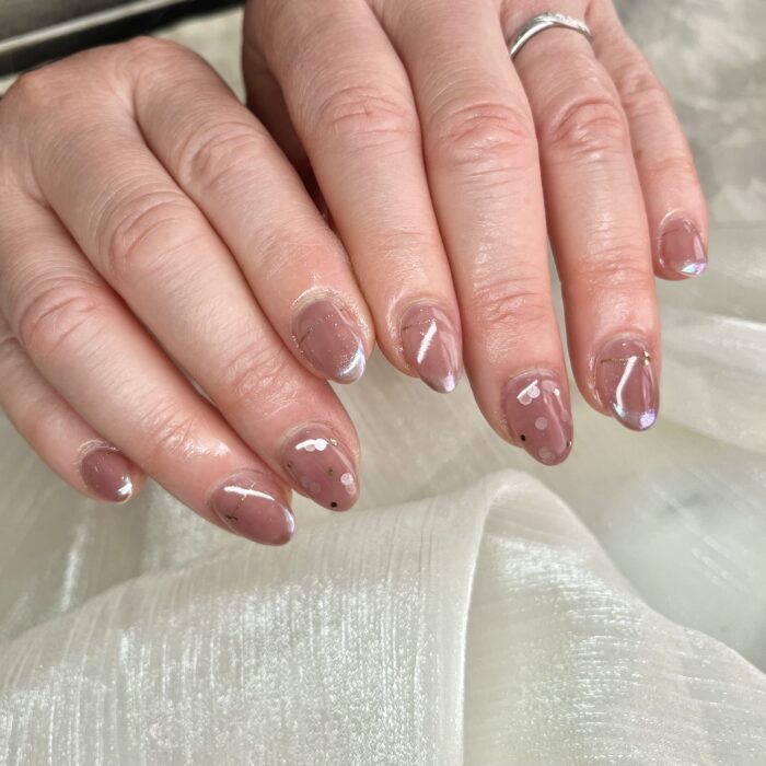 なじみの良いピンクに、ホロ、オーロラを合わせました♡