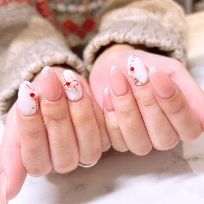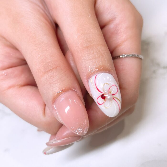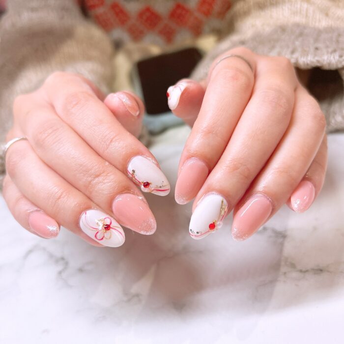 お正月イメージの水引きモチーフデザインを取り入れて仕上げました♡
