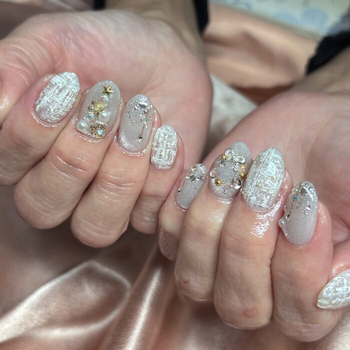 ホワイトカラーで素敵な冬ネイルになりました
