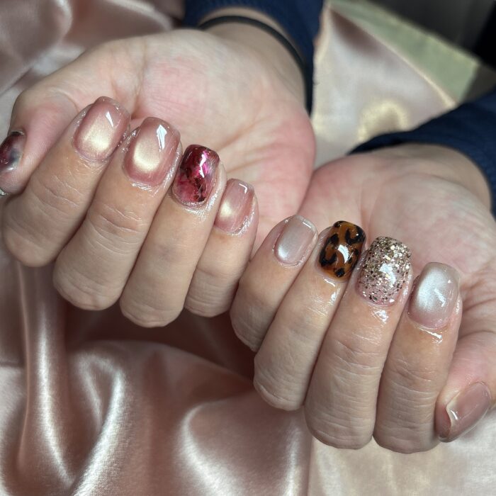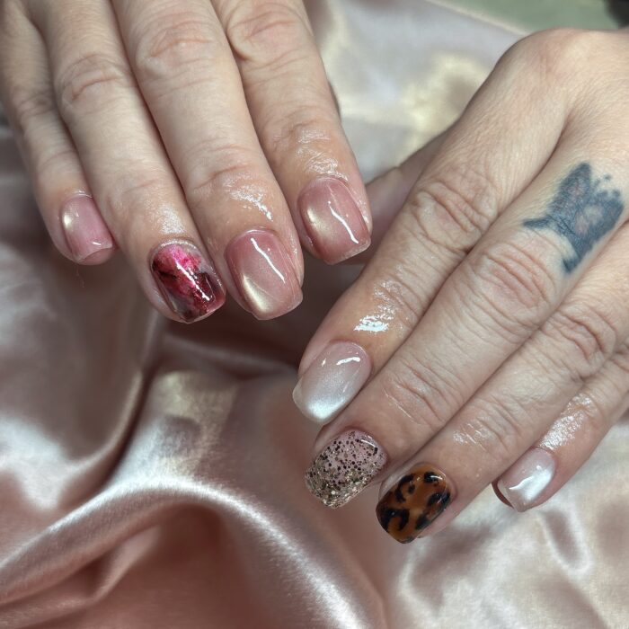 1本ずつのアートですが、シンプルになり過ぎず、種類たくさんで大満足なネイルになりました