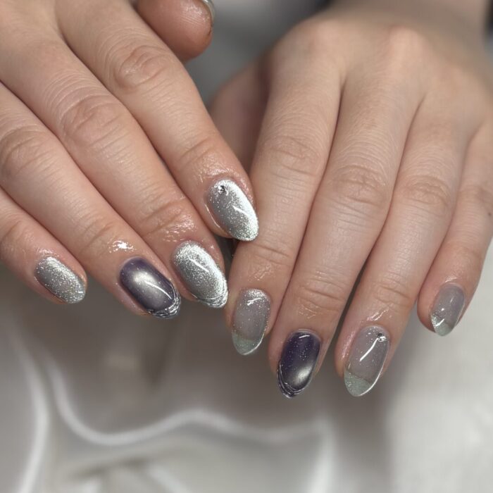 寒色系でまとめて冬っぽいネイルに仕上がりました✨