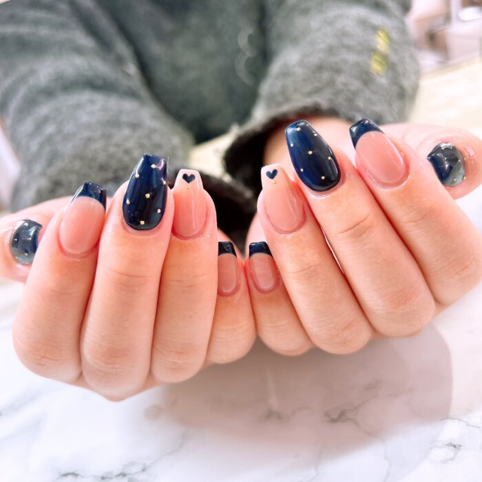 深いネイビーカラーとナチュラルなベージュが相性抜群です♡