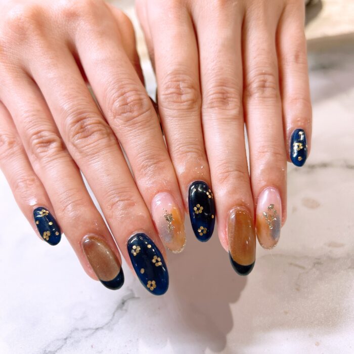 お好きなネイビーカラーをベースにフレンチやニュアンスを取り入れたネイルになりました♡
