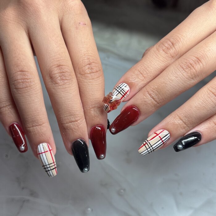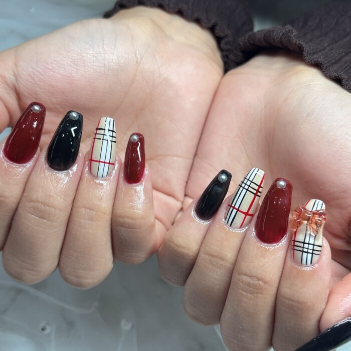 チェック柄で冬らしいネイルをお楽しみいただきました✨