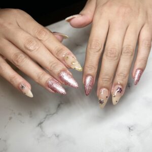 ビジューネイルとピンクラメがとてもお似合いでした♡