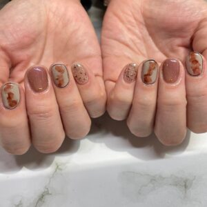 ブラウンカラーの大人しめなネイルに仕上がりました💗