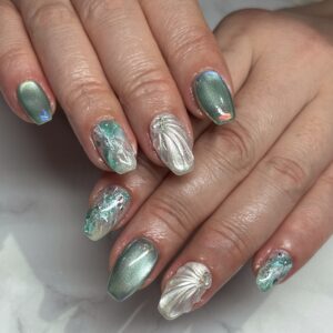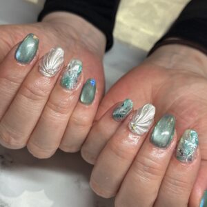夏らしくマーメイドネイルも入れて素敵なネイルに仕上げました(^^♪