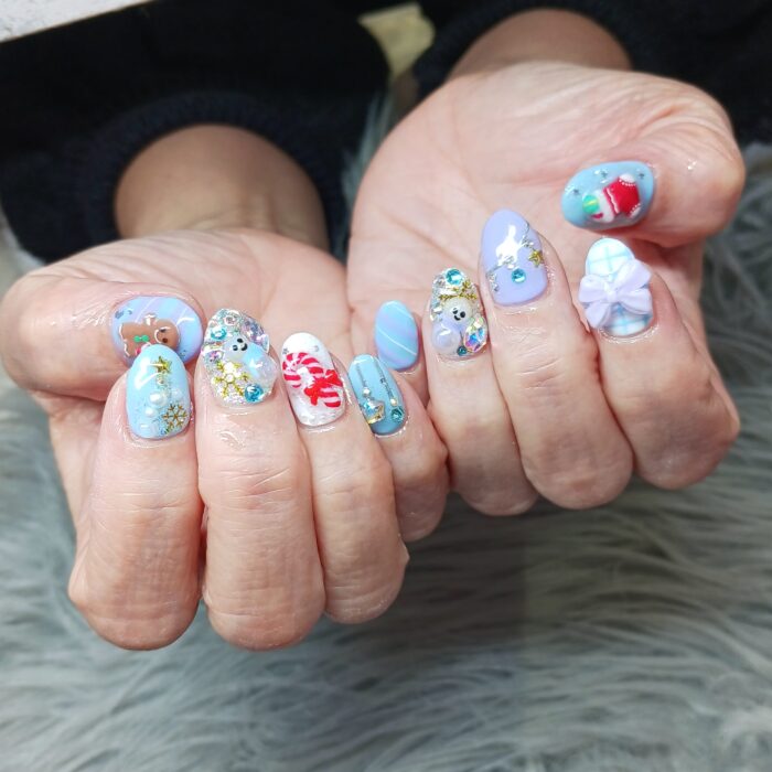 クリスマスネイルっぽく埋め尽くしには雪だるまが(*^^*)