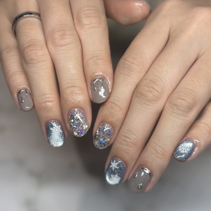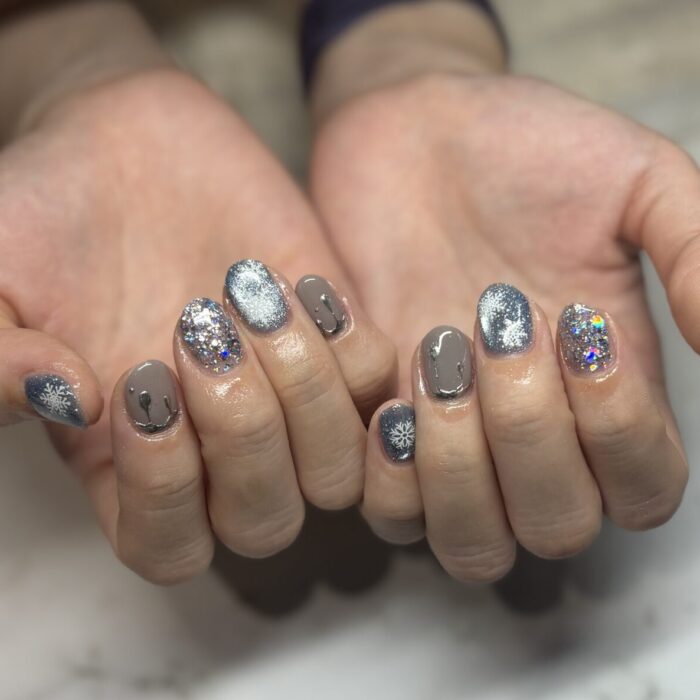 冬らしいカラーで結晶もいれて時期ぴったりなネイルに仕上がりました♡