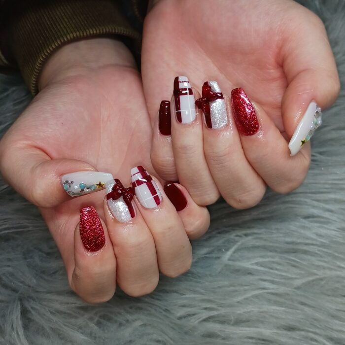 いくつかのデザイン組み合わせたクリスマスネイル✨