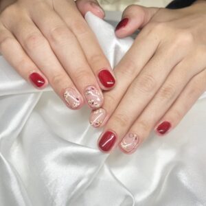 押し花と赤のワンカラーを合わせました♡