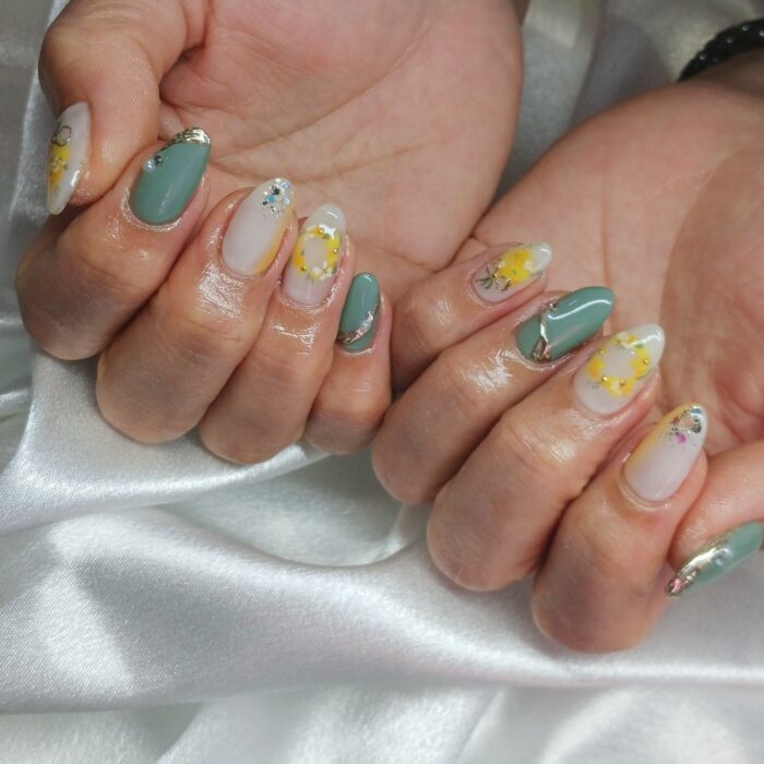 春らしいお手元になりました(*^^*)ミモザネイル素敵✨