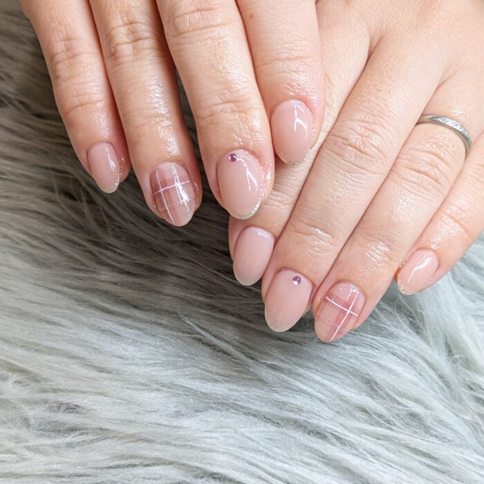 今回は、肌なじみの良いカラーにチェック柄を入れて仕上げました(*^^*)