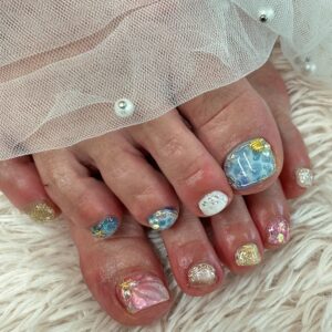 夏らしいネイルをテーマに青とピンクで海とマーメイドネイルをお楽しみいただきました♡