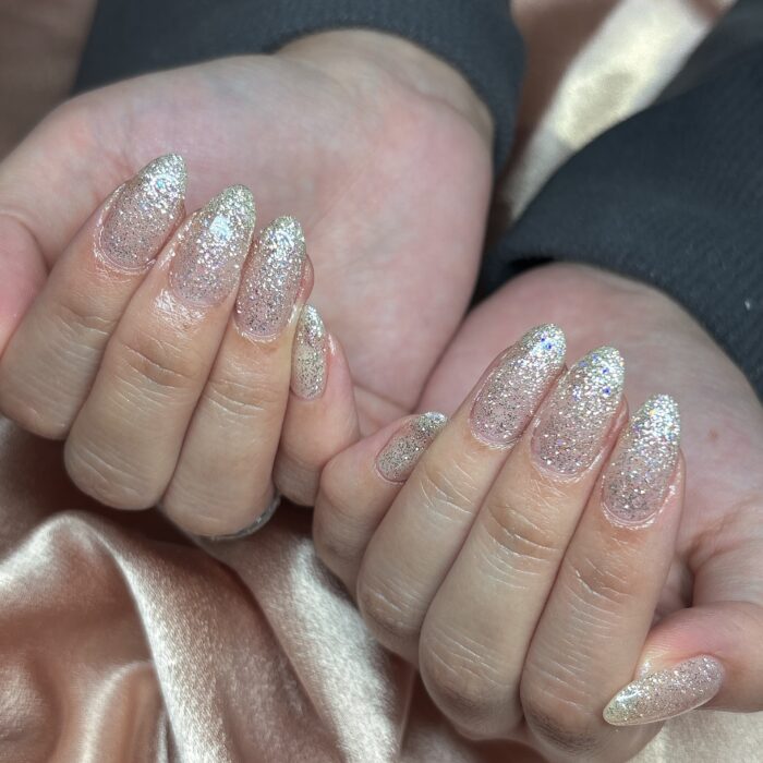 ラメのワンカラーですが、たくさんのラメを混ぜてキラッキラに