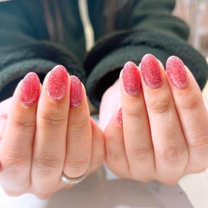 赤みのあるピンクカラーのフラッシュラメがこれからのシーズンにピッタリですね!