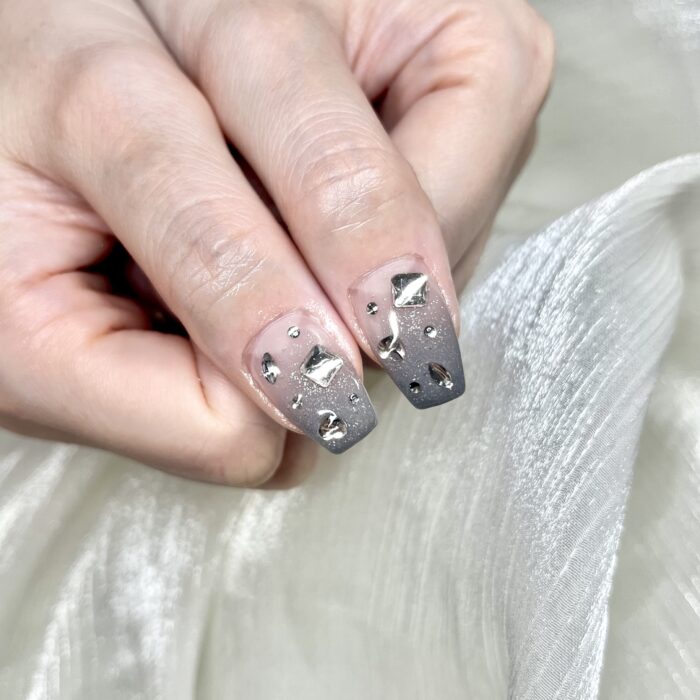 グレーのグラデーションにクリスタルパーツがとてもお似合いでした♡
