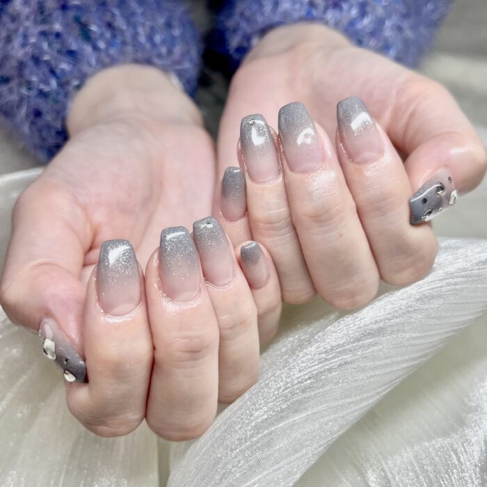 グレーのグラデーションにクリスタルパーツがとてもお似合いでした♡