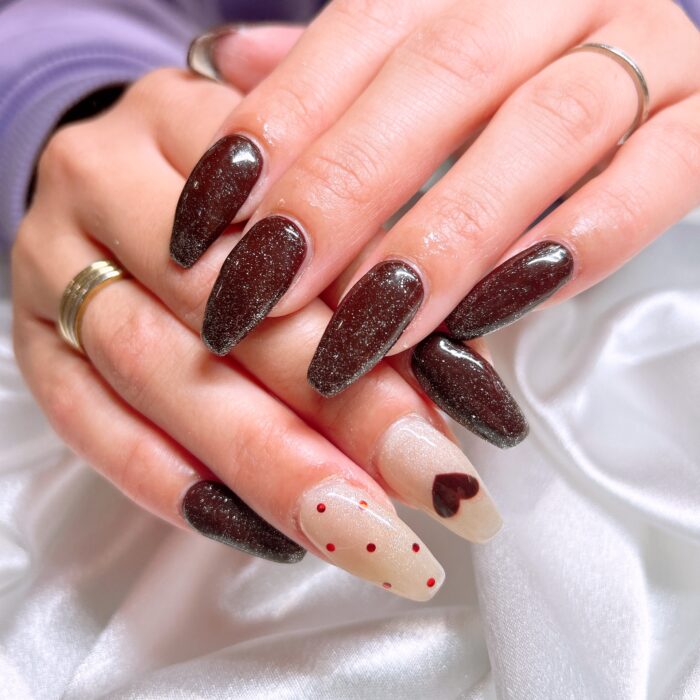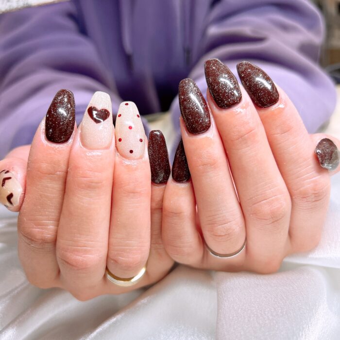 チョコレートカラーにキラキラのラメや