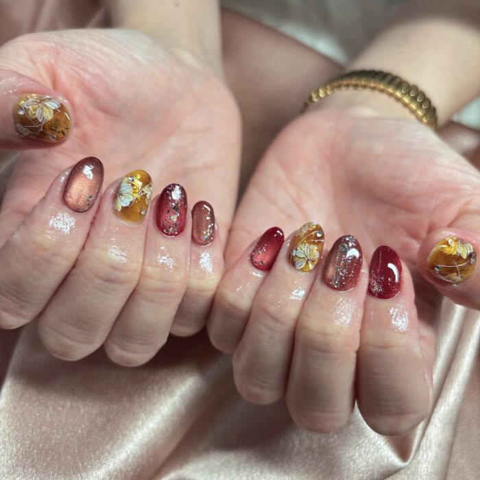 秋らしいカラーのマグネット2色とお花デザインをお楽しみいただきました
