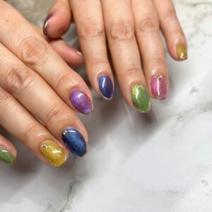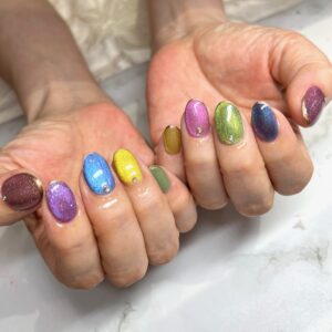 カラフルなマグネットネイルで仕上げました💙