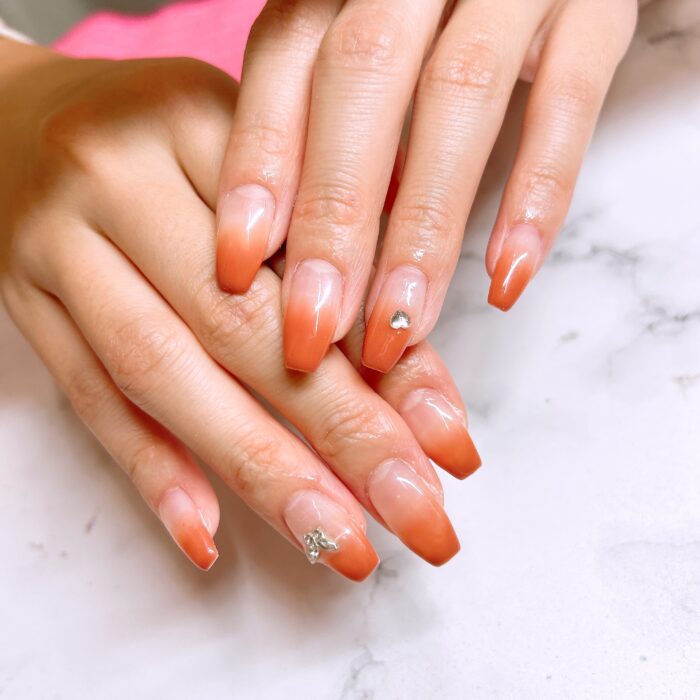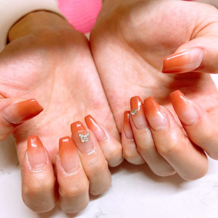 秋らしいブラウンのグラデーションネイルにポイントでストーンを付けて頂きました♡