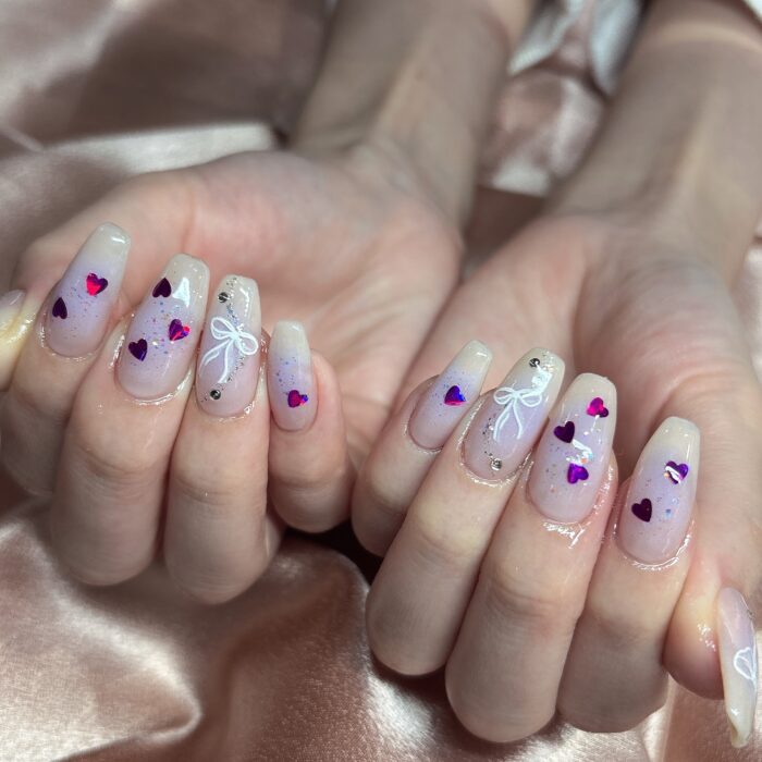 リボンがとてもcuteで素敵なネイルに仕上がりました✨