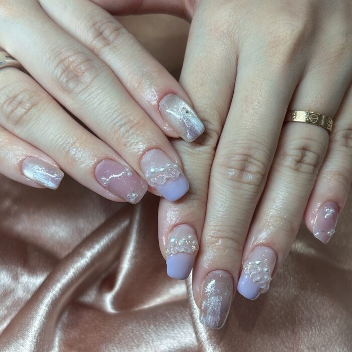 パープルがとてもお似合いでかわいいネイルに仕上がりました