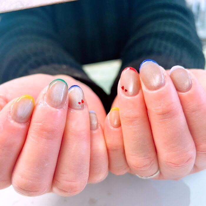 ライブに向けてメンバーカラーを使ったフレンチデザインに仕上げました(*^^*)