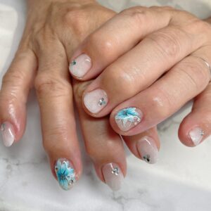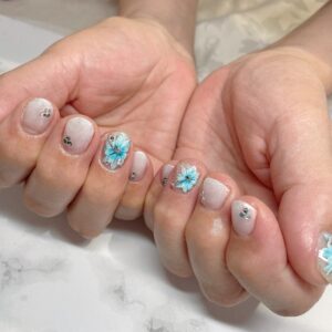 水色のお花で白のグラデーションもMIXして夏らしいネイルに仕上がりました✨