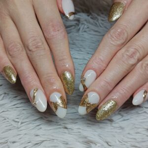 ホワイトとゴールドでクリスマスを感じさせるネイルをお楽しみいただきました
