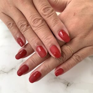深みのある赤のワンカラー、マットも使用しているので強すぎない感じがとても良いです(*^^*)