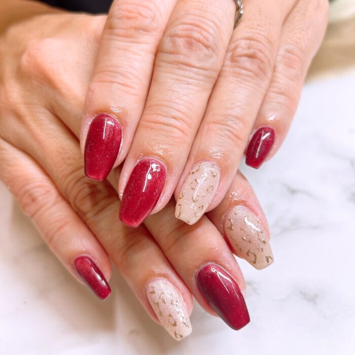 鮮やかな赤のマグネットにゴールドのレオパードが良くお似合いです!