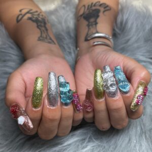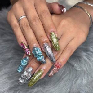 1本ずつラメの色を変えて、色に合うパーツを付けました(*^^*)