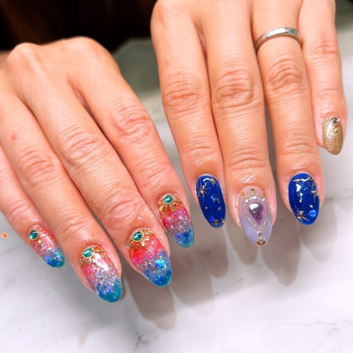 アラビアンイメージのカラフルなネイルに仕上がりました!