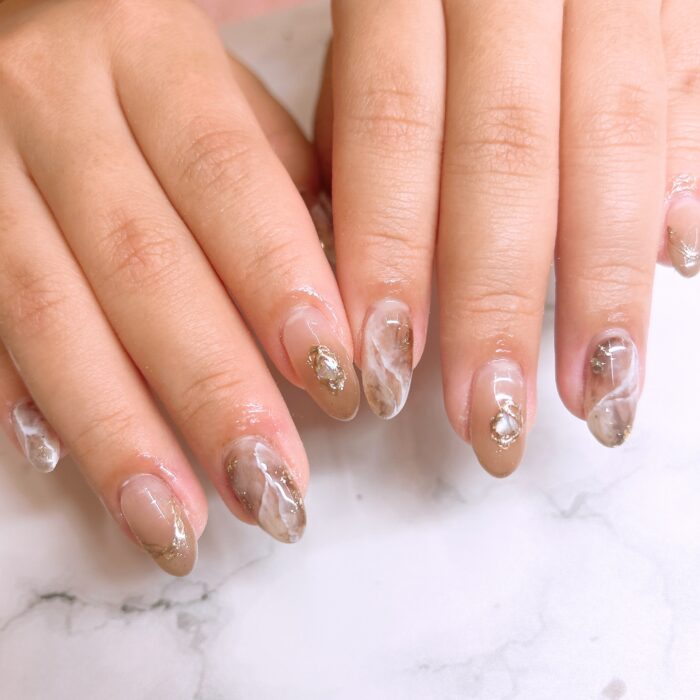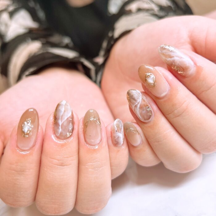 秋らしいミルクティーカラーのデザインに、ゴールドが良く映えますね♡