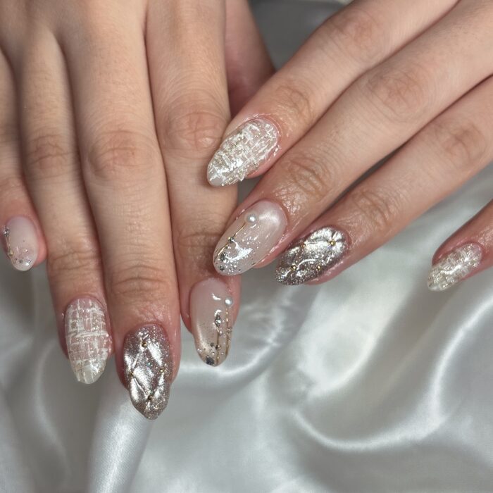 キラキラでいろんなデザインを詰め込んだ可愛いネイルになりました✨