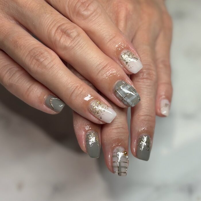 少し緑の入ったグレーでクリスマス感あるネイルになりました✨