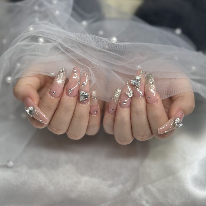 ピンクとラメでシンプル可愛くパーツでアクセント♪