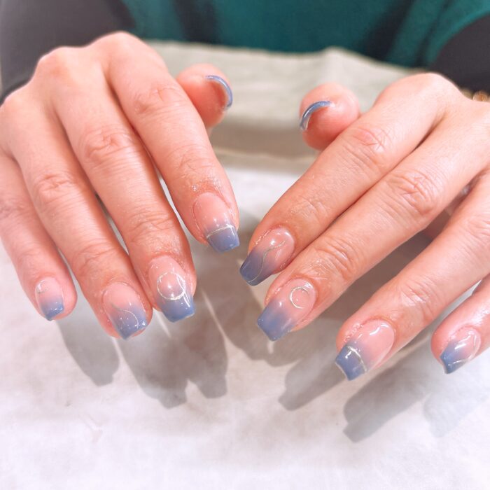 青みラベンダーのグラデーションにシルバーミラーのデザインが映えますね♡