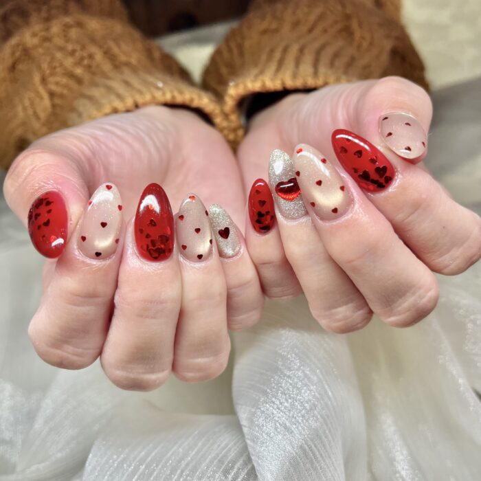 赤のハートホロの埋め込みがとても可愛かったです♡