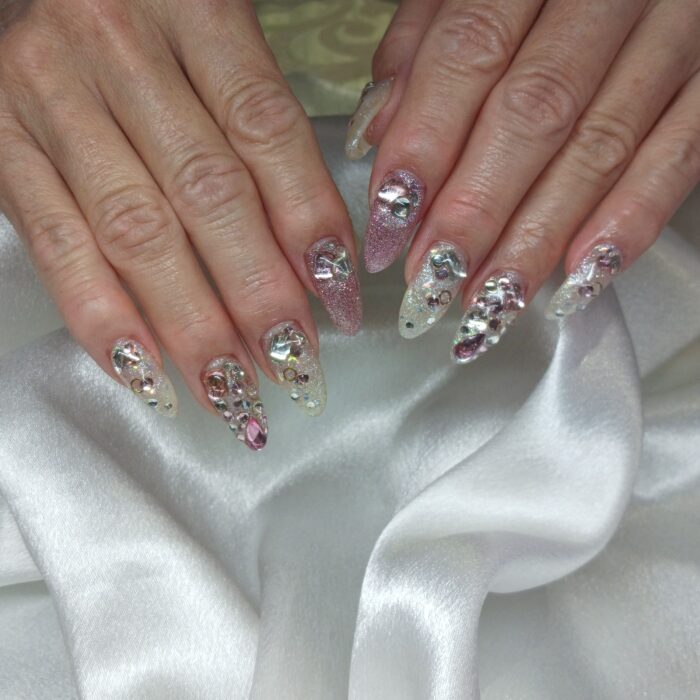ピンクとホワイトで華やかなお手元に(*^^*)